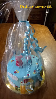 Cuando me pidieron que hicera esta tarta para el mes de julio, no caí en la cuenta del calor que hace en este mes, y este año más. Según iban pasando los días más vueltas le iba dando a cómo iba a quedar con estas olas de calor que no nos han dado un respiro durante este verano. Pero como había dicho que la hacía no me quedó otra. Al final no quedó tan mal. A Victor que cumplió 2 años le encantó.